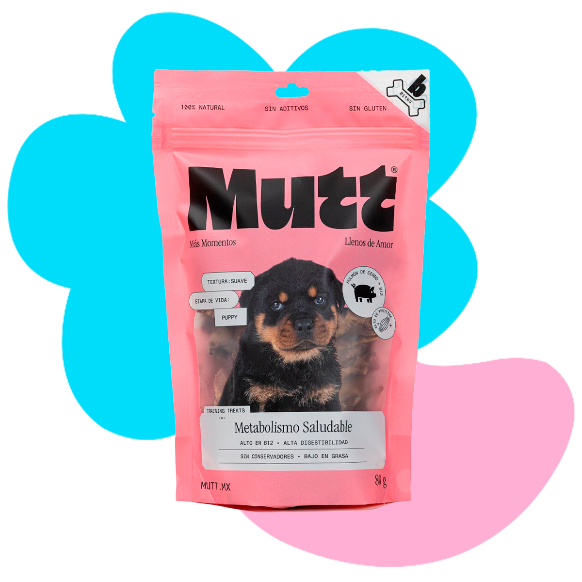 Mutt Metabolismo Premios Tipo Jerky para Cachorro Receta Pulmón de Cerdo, 80g