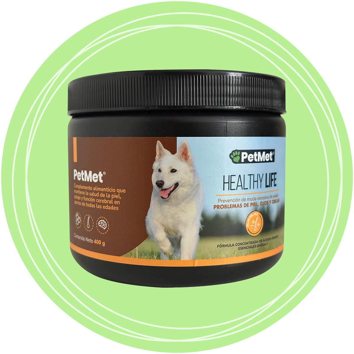 Petmet Healthy Life Complemento Alimenticio Natural para Cuidado de Piel y Pelo para Perro, 400 g