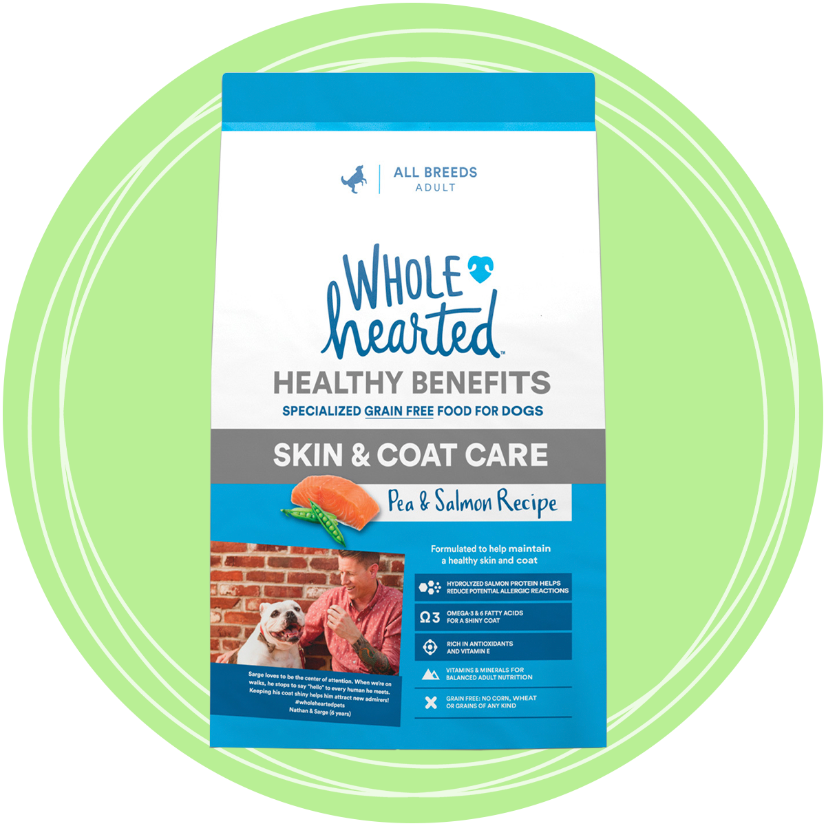 WholeHearted Healthy Benefits Alimento Natural para Perro Adulto Cuidado de Piel/Pelo Receta Salmón y Chícharo, 11.3 kg