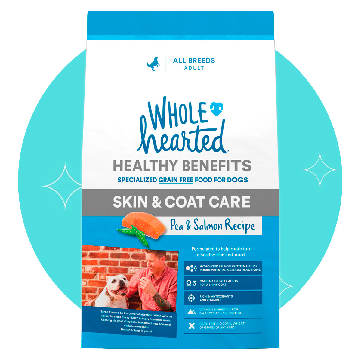 WholeHearted Healthy Benefits Alimento Natural para Perro Adulto Cuidado de Piel/Pelo Receta Salmón y Chícharo, 11.3 kg